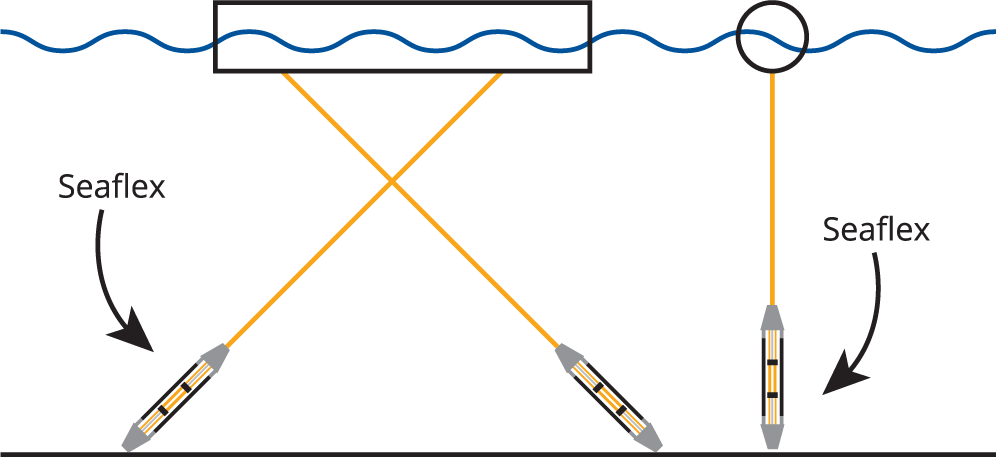 Seaflex – це армована еластична швартова конструкція що розширюється і стягується з кожним припливом, зберігаючи усі частини стабільно на плаву. Унікальна конструкція має амортизуючий систему, яка знижує пікові навантаження під час ураганів, цунамі та штормових погодних умов. Саме ця особливість значно збільшує термін служби конструкції.